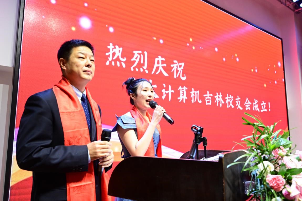 友谊会馆隆重举行,校领导、两院领导与来自全省各地的校友代表、学生代表共200余人出席了成立大会,气氛热烈,场面恢宏。大会由吉大计算机88级校友王曙光和2018级在读博士生葛佳琦主持。