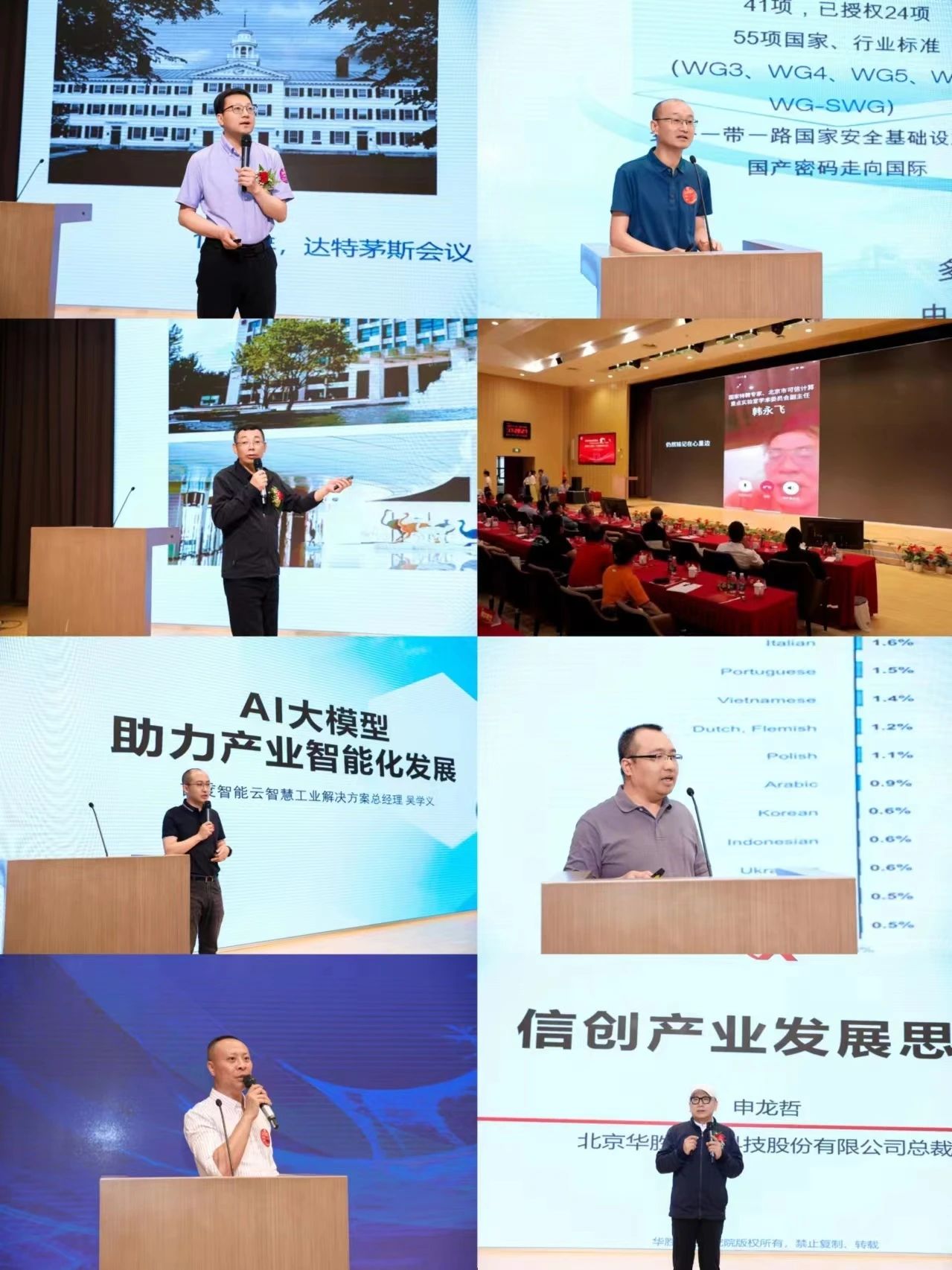 、网络安全学院院长杨博,东方国信联席总裁霍卫平校友,百度智能云解决方案总经理吴学义校友,云集至公司技术总监解决方案部总经理张海涛校友,吉大正元执行总裁田景成校友,国家特聘专家、北京市可信计算重点实验室学术委员会副主任韩永飞校友,清雁科技公司(北京)有限公司技术总监林杨校友,华胜天成总裁申龙哲校友作主题演讲,为大家勾勒出人工智能技术的广阔前景,为科技发展注入新动力。