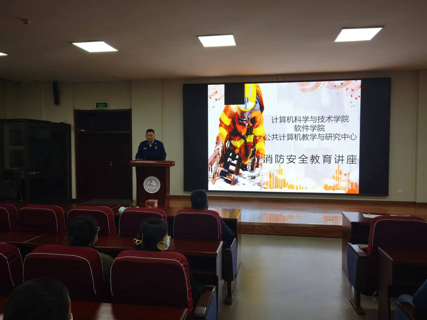 在学校保卫处消防科的大力支持下,组织学院师生进行了消防知识、火灾自救及逃生、简单灭火技能等讲座和演练。此次活动由计算机科学与技术学院行政副院长李昕主持,党委书记宫皓宇、院长杨博和两院及公共计算机教学与研究中心师生参加。