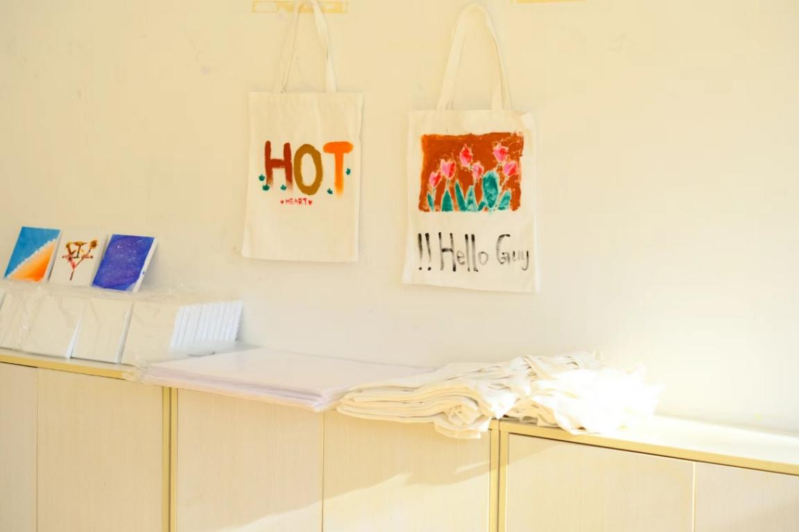 活动拉开帷幕时,同学们纷纷踊跃参与。挑选心仪的画材,如画板、画纸或帆布包,再精心选择颜料,同学们在指定位置开始了创作。静心描绘,一笔一划展现内心构想和情感。创作结束后,同学们自发将作品留在活动室内,形成了一个小型展览会,同学之间交流创作灵感,分享心得,现场欢声笑语不断。