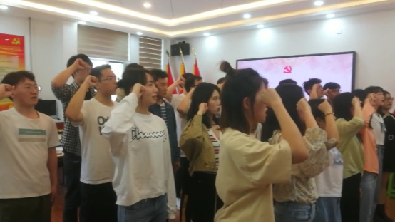 软件工程专业硕士学生第二党支部在计算机楼B340党员之家举行预备党员入党宣誓仪式,在党支部参会的正式党员的见证下,于怀志等25位同志进行入党宣誓。