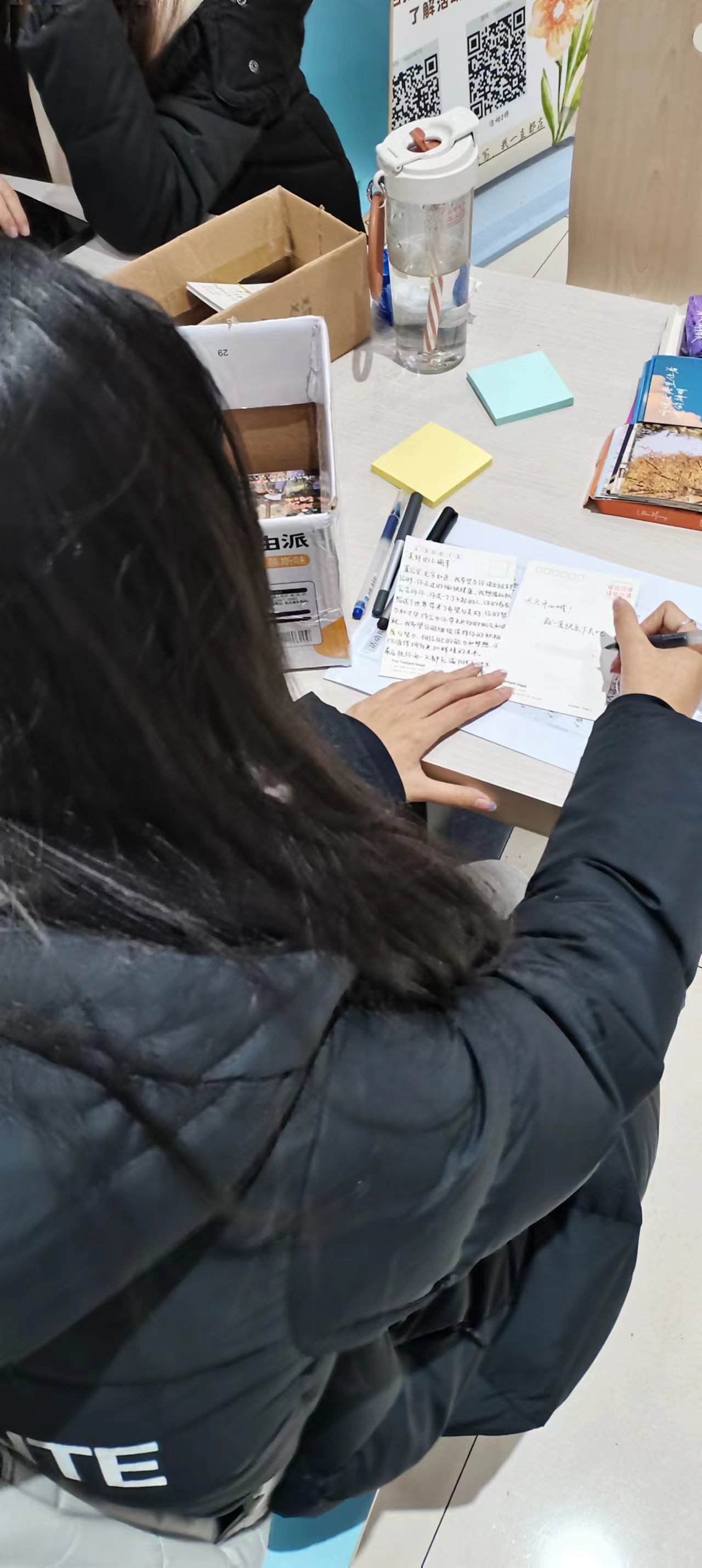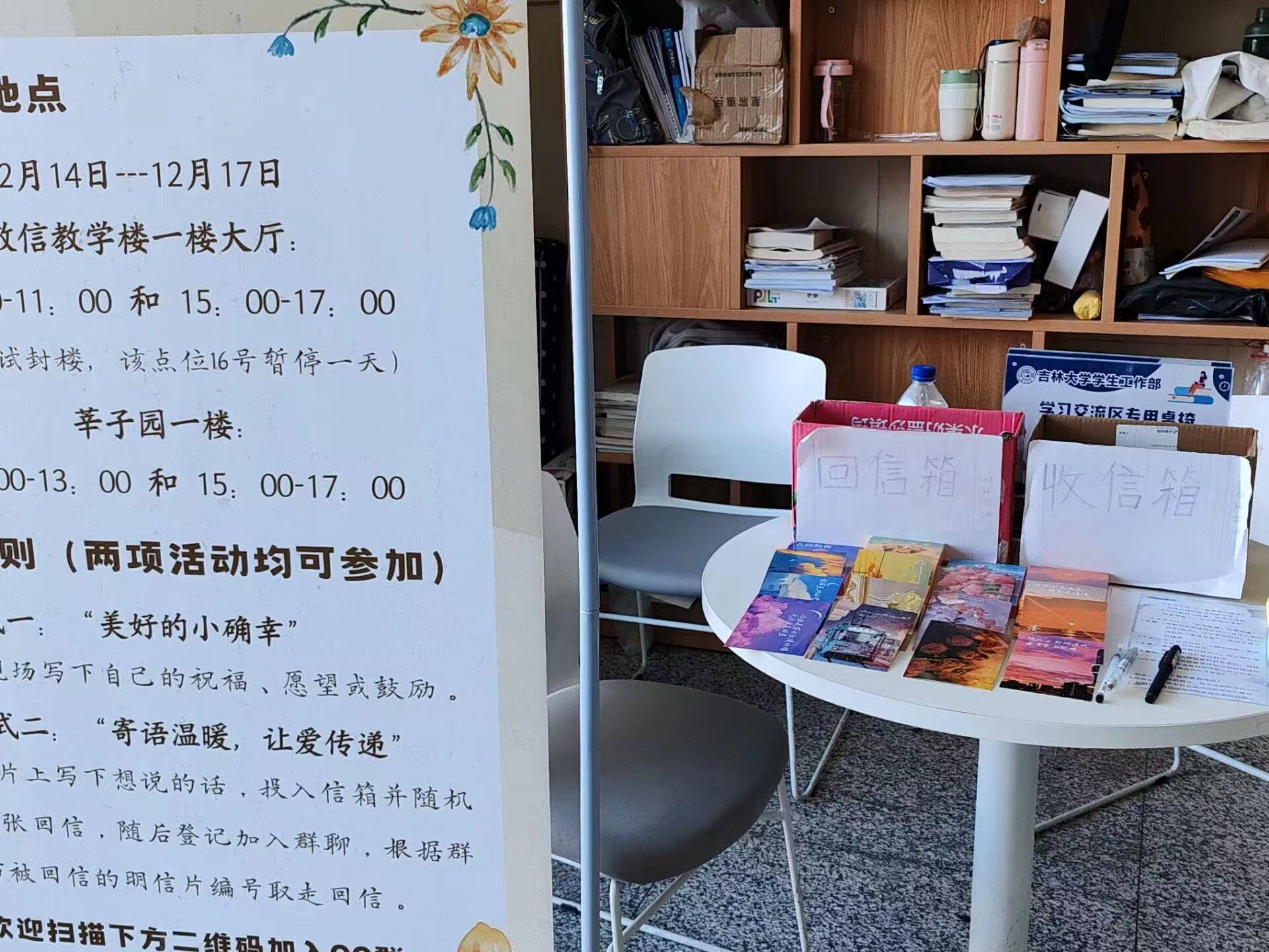 经过四天的开展,本次活动共吸引一百六十余位同学参与,二十一名志愿者同学担任工作人员,收到明信片五十余张,并且每一张都得到了相应的回信。同学们小小的善意,温暖了整个寒冷的冬季。