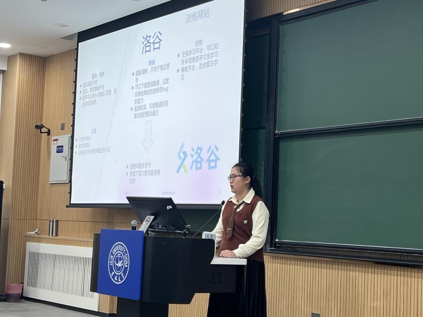 随后,邱天同学从学科竞赛的角度进行经验分享,她简要概述了大学期间可以参与的学科竞赛类型,并分别解释了主办方、竞赛时间、报名方式、组队流程、奖项级别等情况,使同学们更好地理解不同学科竞赛之间的区别。在此基础上,邱同学以自己的参赛经历为例,向同学们传授了比赛经验及备赛方法,推荐了许多实用的学习网站及资源获取渠道。她热情鼓励同学们踊跃报名参加学科竞赛,提升专业知识和技能,锻炼团队合作能力,成就更好的自己。在现场答疑环节,同学们就自身疑惑进行提问,两位同学细致耐心地予以解答,现场气氛热烈活跃,在场同学纷纷表示干货满满,受益匪浅。