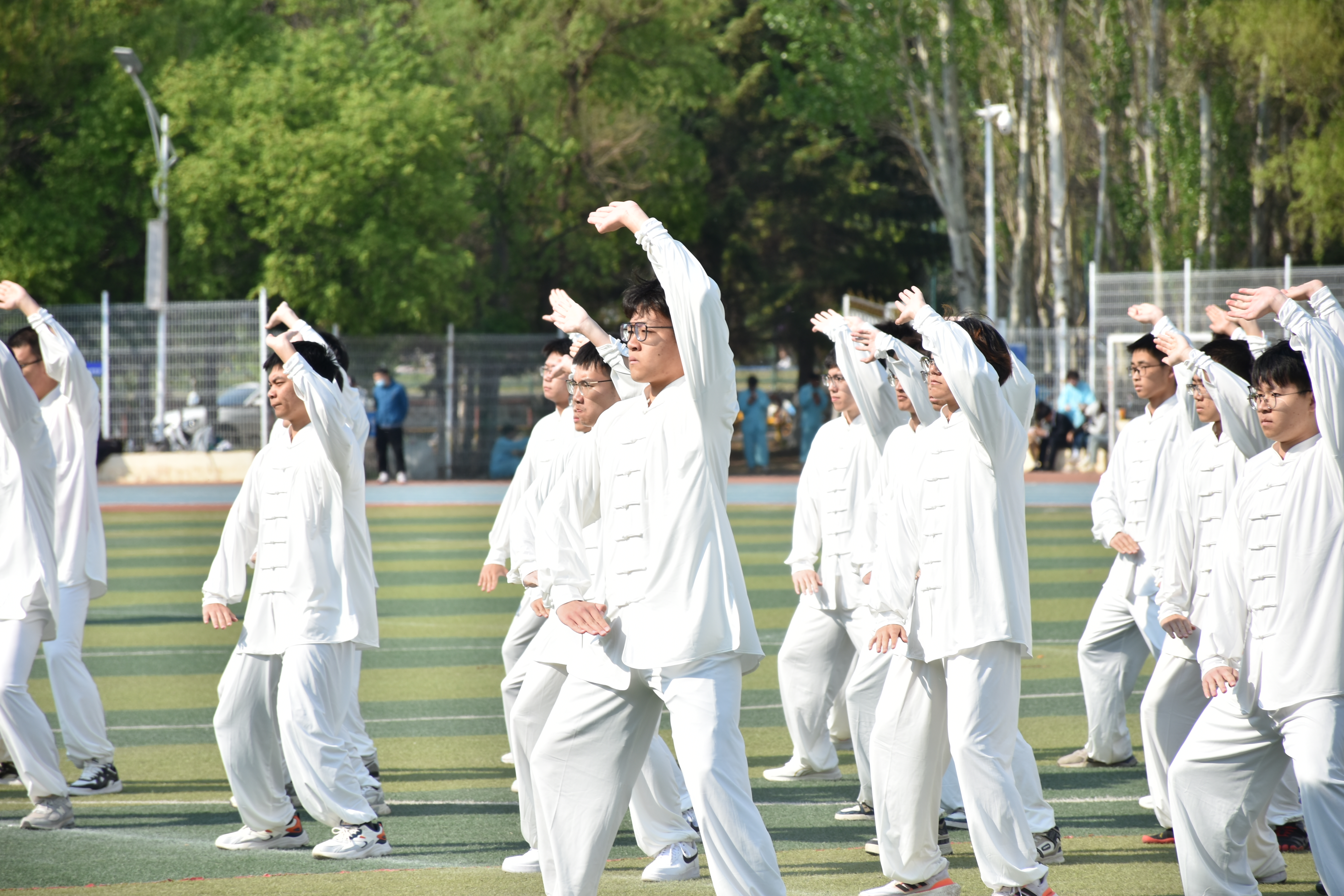 生活学习部带领七十余名同学,利用课余时间开展了近一个月的训练。同学们十分重视珍惜这次为学院争取荣誉的机会,以一丝不苟的态度认真学习了八极拳的动作,包括基本站姿、拳法和脚法,全面地把握各个动作的要领并追求细节的到位。每个训练的晚间,同学们牺牲自己的休息时间,克服日程安排的诸多不便,以极高的热情和专注度投入到集体训练中。23级辅导员王星阳老师时常来到场地,陪伴并鼓励大家,生活学习部的同学也会为每一位参与训练的同学准备热奶茶,送去暖心的问候,帮助他们驱散身上的寒意。