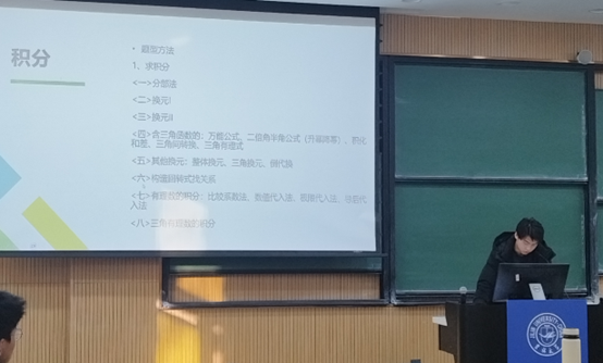 在微积分分享环节,软件工程专业的陈恩同学系统回顾了极限、导数、不定积分等核心内容,通过实例解析帮助同学们加深理解,掌握重点知识。
