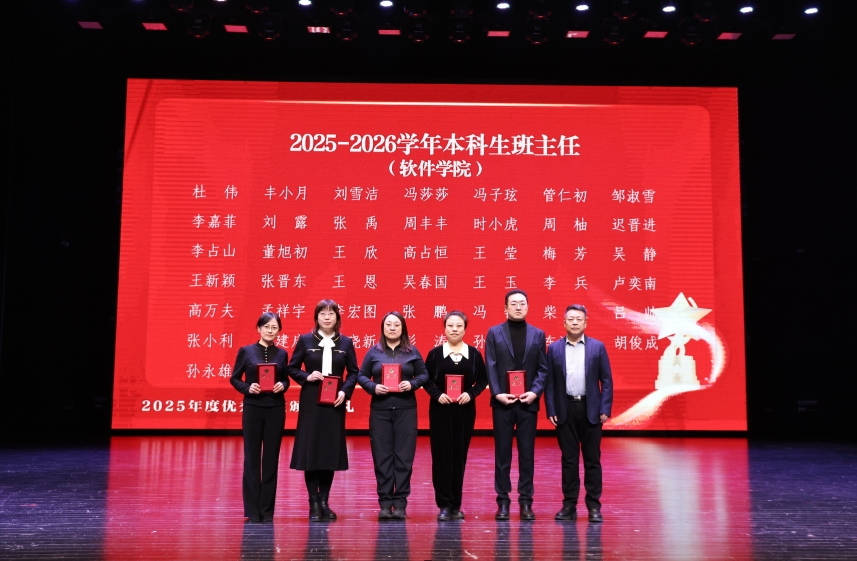 颁奖典礼在庄严的国歌声中拉开帷幕。首先由宫皓宇老师宣读2025-2026学年本科生班主任聘任名单及“2025年度优秀学生”获奖名单,并为班主任代表颁发聘书。