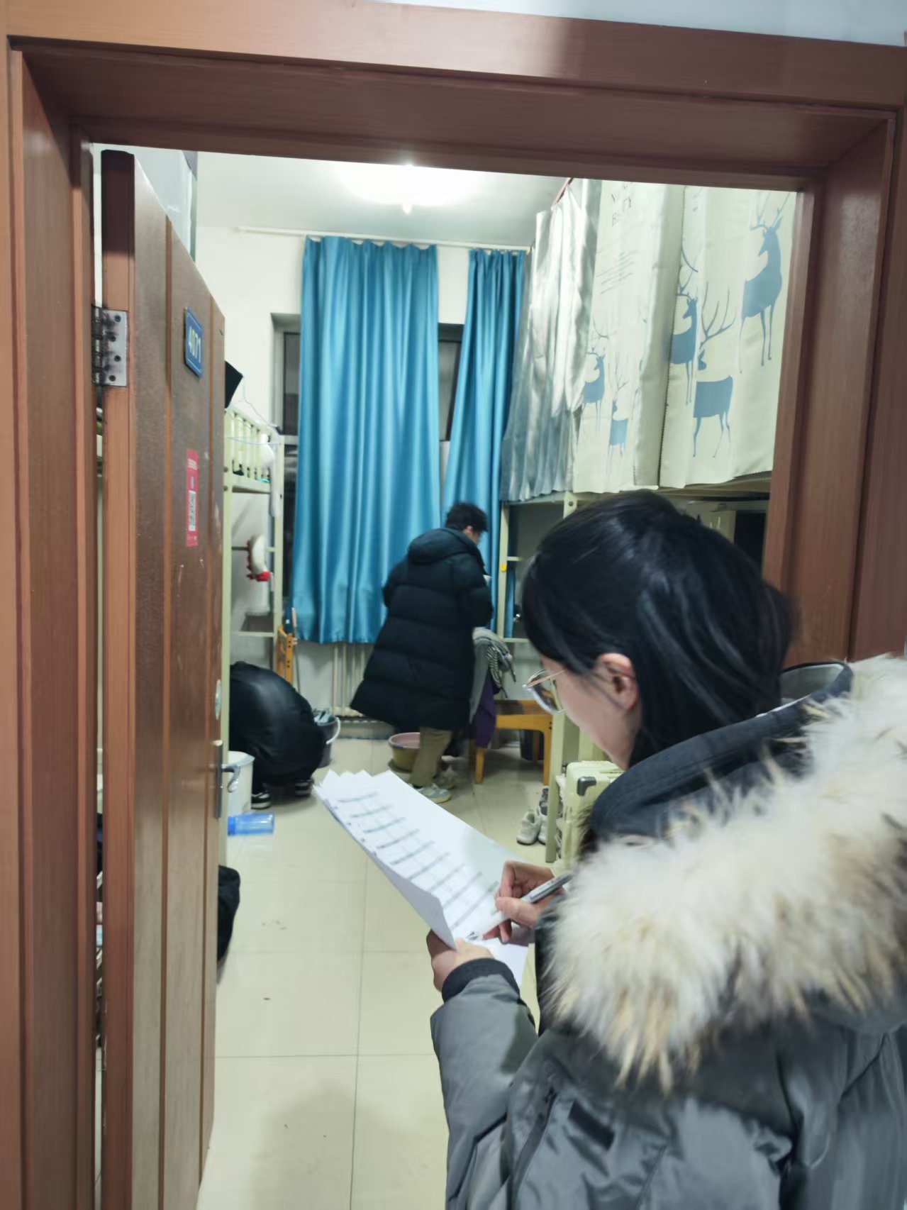 为切实做好寒假期间学生公寓空调安装电气系统改造工程的配合工作,保障施工顺利推进,同时全面筑牢假期安全防线,学院党委副书记冯羿铭及全体辅导员于近日深入大学城二、三公寓、北苑一公寓、南苑七公寓,面向大一至大四全体学生,开展寒假前学生公寓安全走访暨工程准备专项检查。