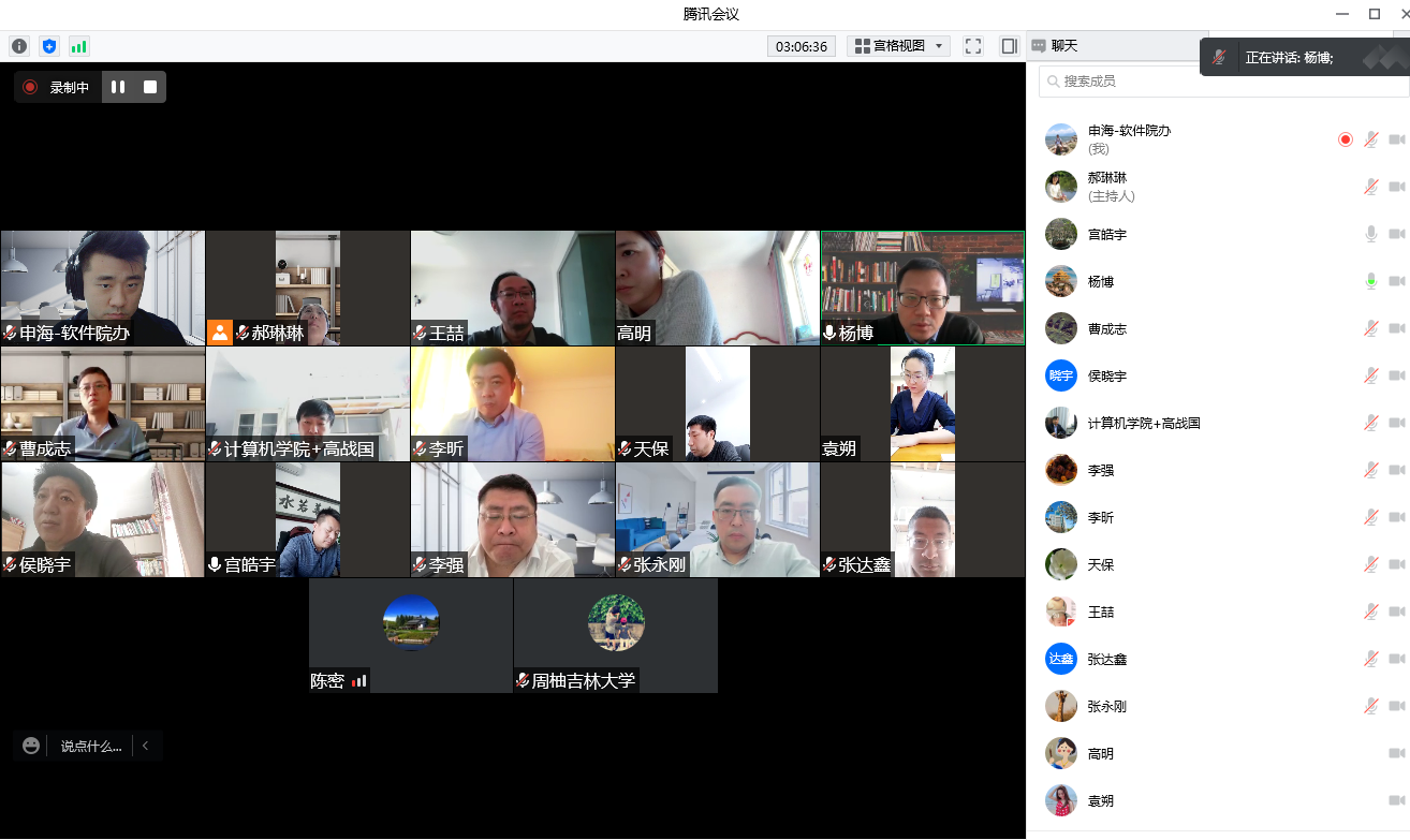 视频会中,计算机科学与技术学院院长杨博传达了学校纪委的14项监督检查清单,与班子成员逐项讨论交流形成工作共识。杨博强调,学院全体领导班子成员要时刻做好准备,及时按照学校要求研究解决疫情防控工作中遇到的问题,安排好线上办公、教学等工作,抓好学生和教工的疫情防控工作,不能把责任全压在一线的学工同志身上,既要分担他们的压力,也要更加关心关爱他们,全院上下共同努力打好疫情攻坚战。