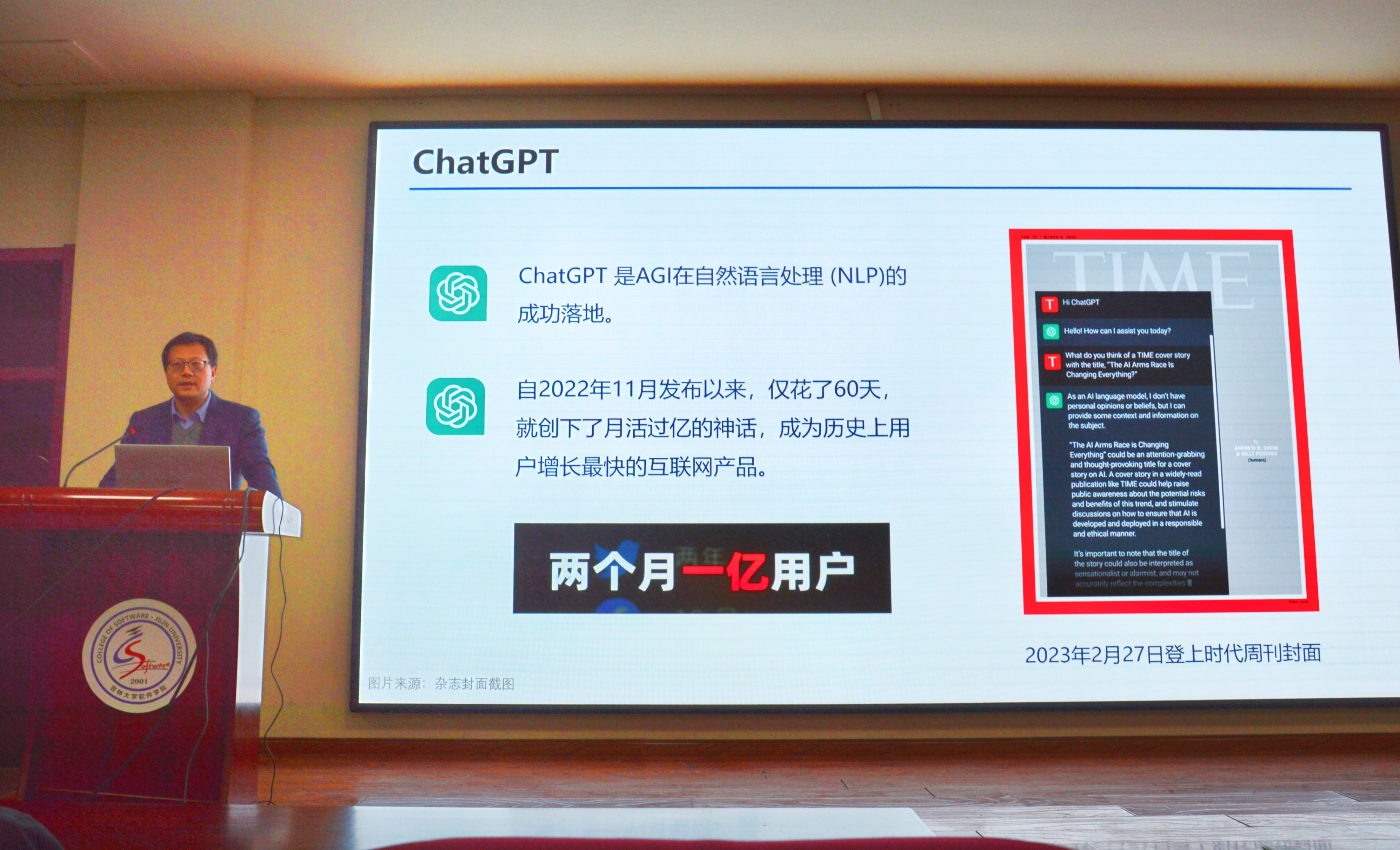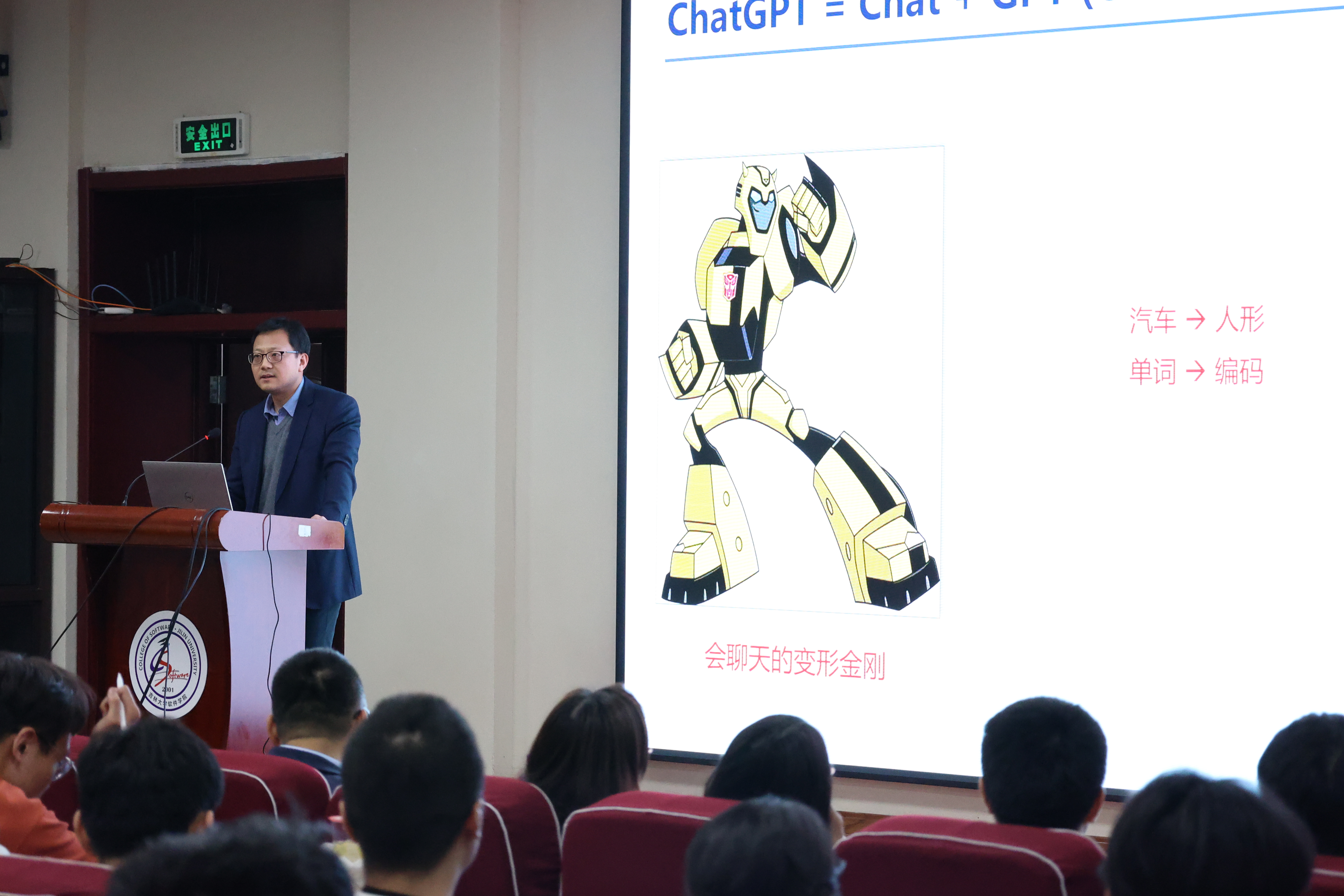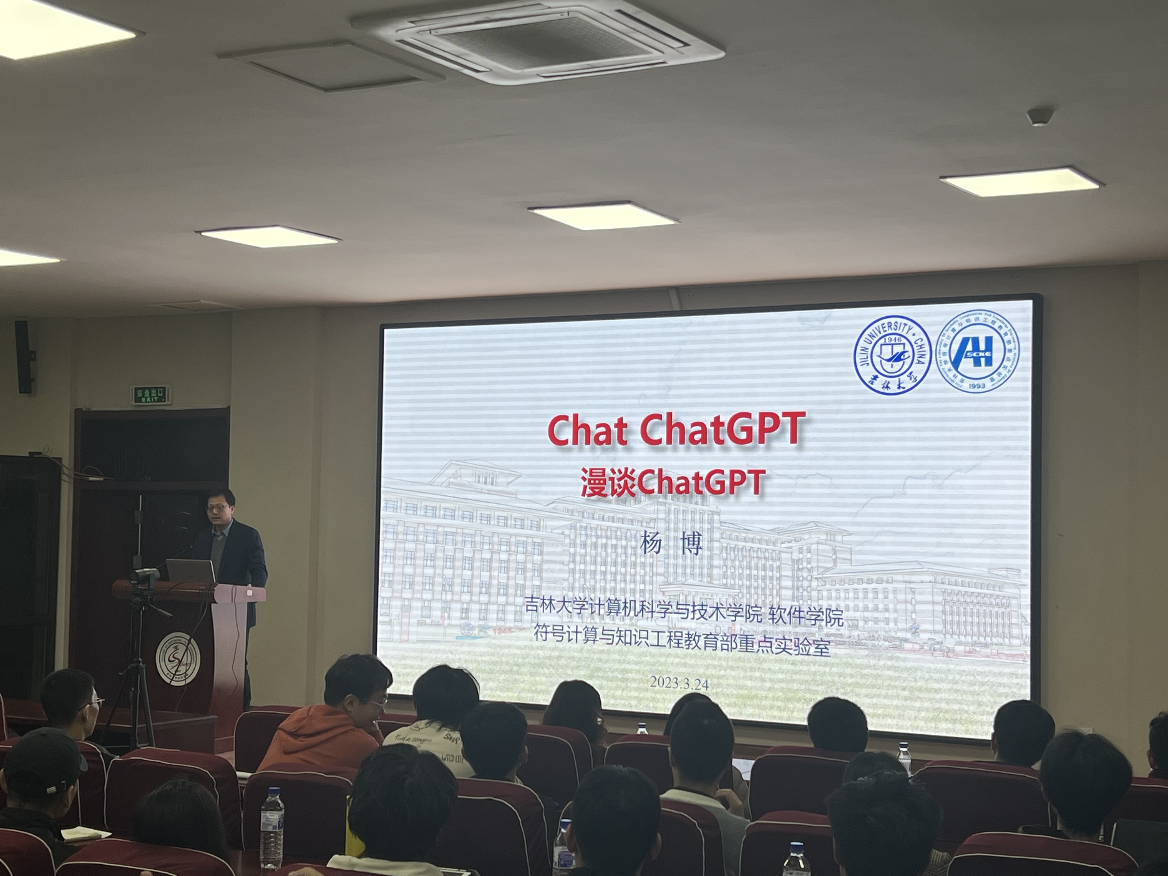 院长杨博教授在王湘浩楼一楼大讲堂为两院学生主讲了题为《Chat ChatGPT》的学术讲座。在长达两个小时的讲座中,杨博院长通过针对性的案例结合人工智能在当下社会中的具体实践,将人工智能的演进史和ChatGPT的现状向同学们生动呈现。