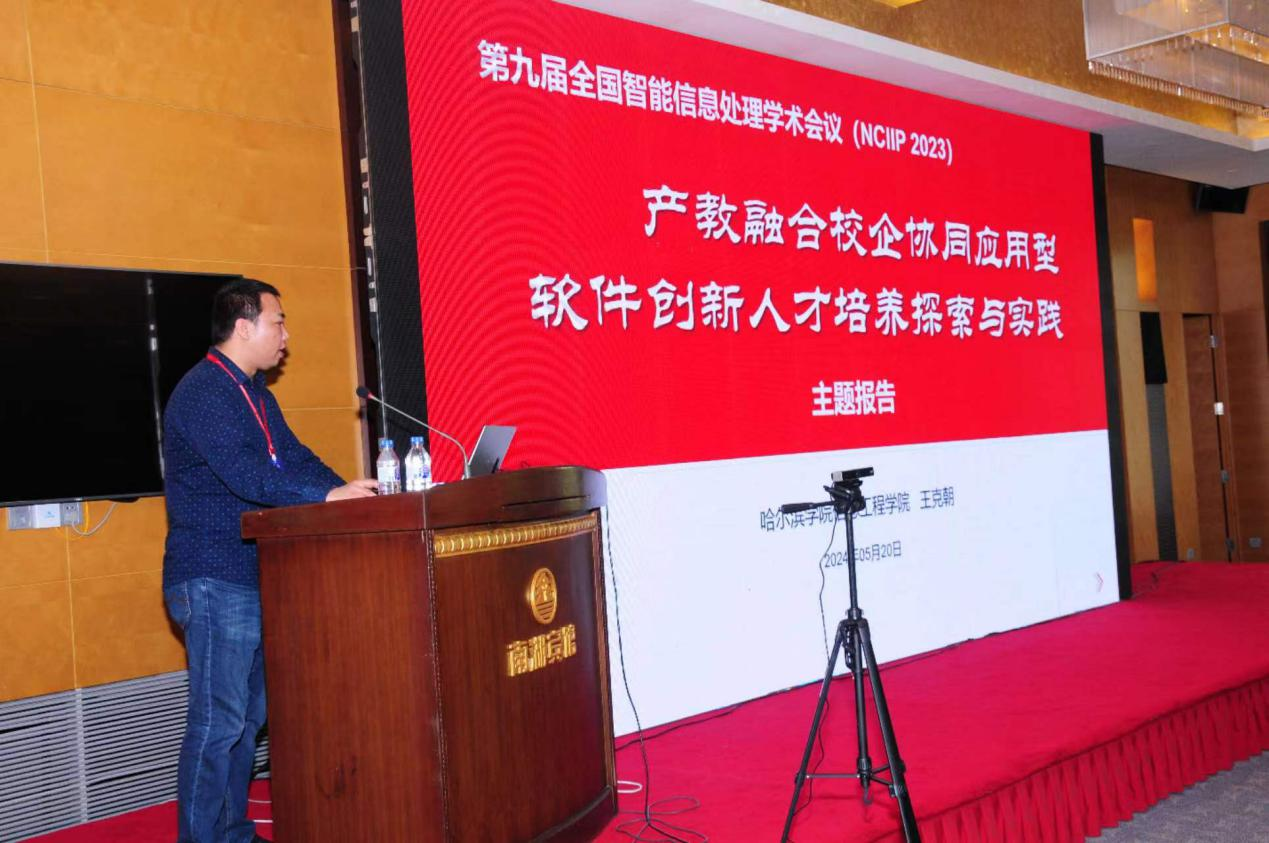 哈尔滨学院信息工程学院(日本女优 )姜德迅教授代王克朝院长做了《产教融合校企协同应用型软件创新人才培养探索与实践》的学术报告
