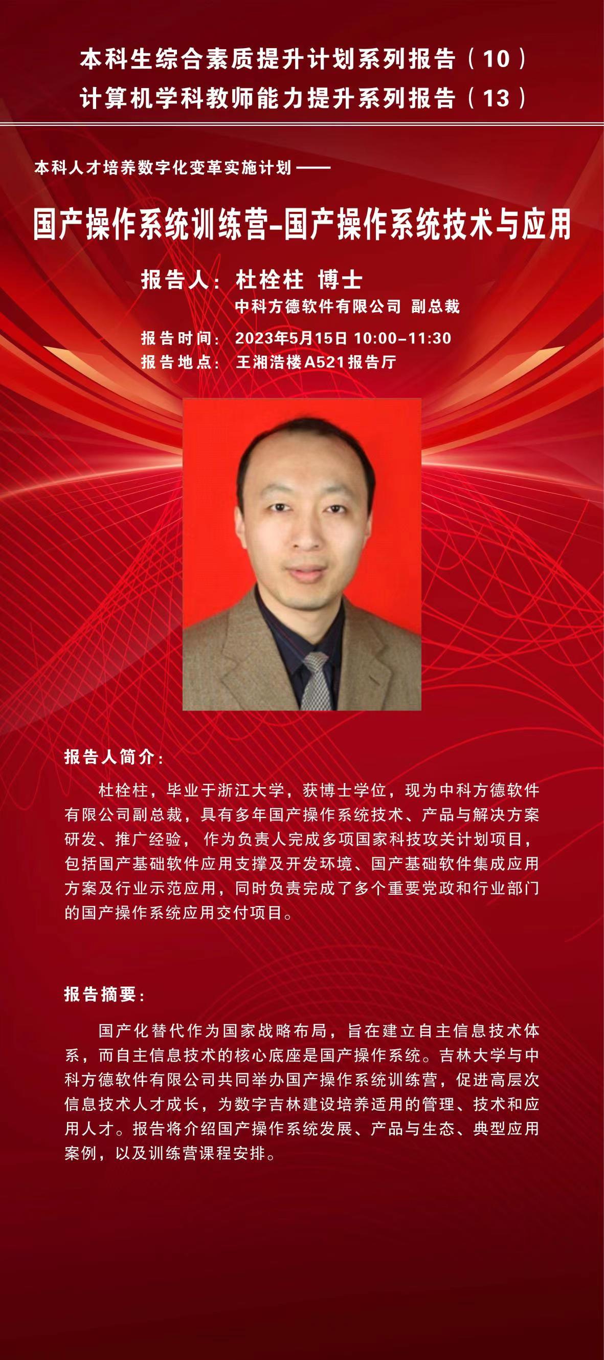 报告人:杜栓柱 中科方德软件有限公司副总裁 博士