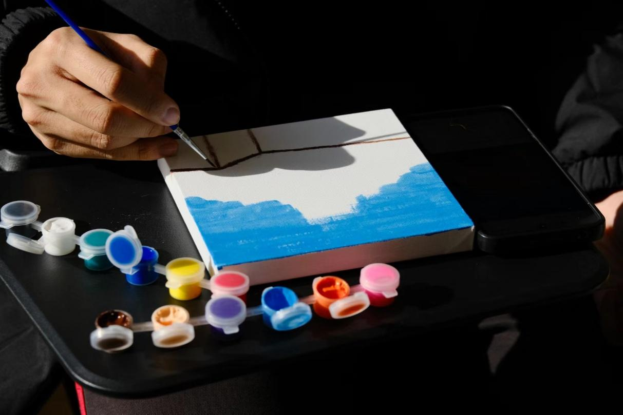 活动拉开帷幕时,同学们纷纷踊跃参与。挑选心仪的画材,如画板、画纸或帆布包,再精心选择颜料,同学们在指定位置开始了创作。静心描绘,一笔一划展现内心构想和情感。创作结束后,同学们自发将作品留在活动室内,形成了一个小型展览会,同学之间交流创作灵感,分享心得,现场欢声笑语不断。