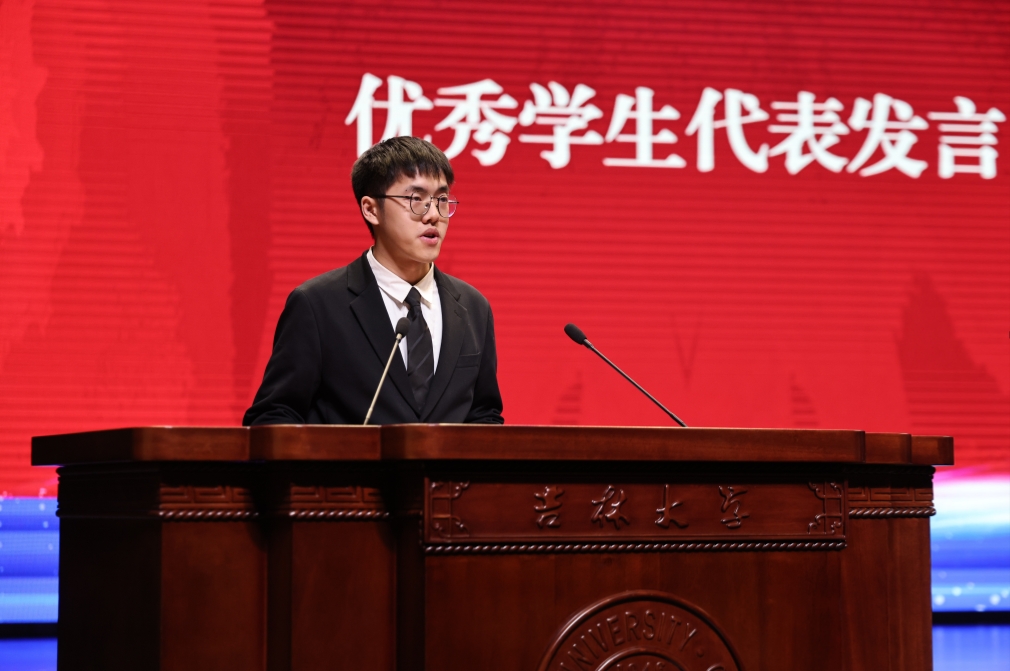 2022级本科生陈赓作为优秀学生代表发言,他首先向学校、学院及全体老师表达诚挚感恩,并向2025级全体新生送上祝贺。随后,他以自身经历,结合“在技术浪潮中锚定开发者坐标”主题,分享了对专业领域发展的思考与感悟,鼓励同学们保持好奇、脚踏实地、敢于创新,在信息时代中找准方向、持续成长。