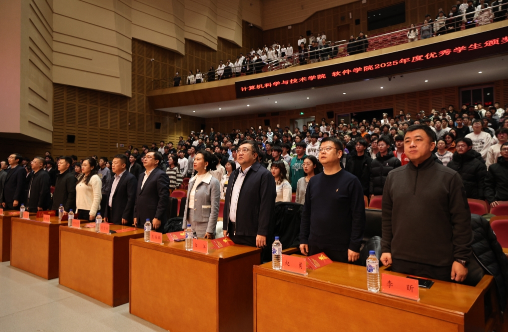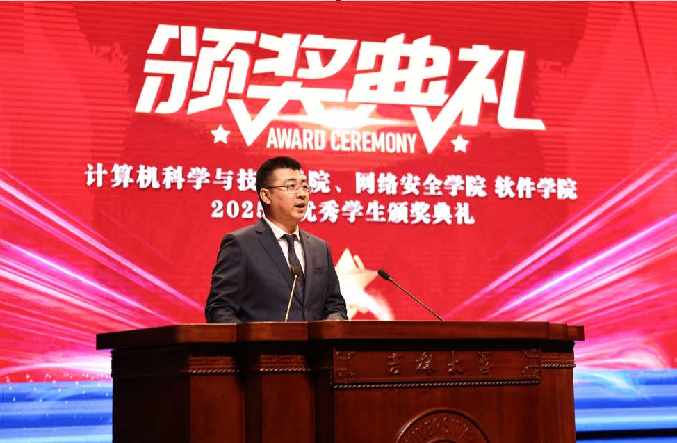 2025年度优秀学生颁奖典礼于鼎新大讲堂隆重举行。保卫处处长刘雪峰老师、学生心理健康指导中心主任朱丽雅老师、学生工作部副部长左振鹏老师、研究生工作部副部长马琨老师、学生就业创业指导与服务中心副主任白江老师、大数据和网络管理中心副主任张达鑫老师、计算机科学与技术学院党委书记宫皓宇老师,学院及中心党政领导班子、教职工代表以及2025级新生出席,计算机科学与技术学院党委副书记兼日本女优